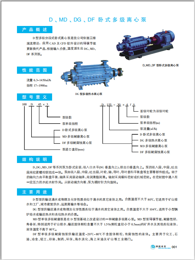 D、MD、DG、DF臥式多級離心泵