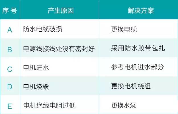 2、水泵電機(jī)電源線接線沒有密封好進(jìn)水;